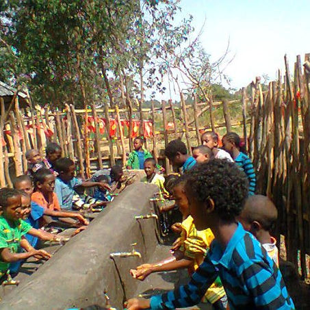 Just two functioning water taps for this many students was clearly not sufficient. Funding from Mandala Trust enabled Link Ethiopia to build a robust water station with several taps, providing the teachers and students of Dudmegn Elementary with clean running water. Even though the actual water supply is intermittent, the school has noticed that the number of children going home for water at break and not returning has greatly diminished. Attendance and concentration have also improved. Check out the photo gallery below to see the joy that water brings.